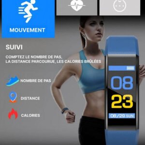 Restez en forme toute la journée avec cette nouvelle Montre Connectée Avec Bluetooth et améliorer votre quotidien. Surveillez l’intensité de vos exercices, le nombre de calories brûlées et autres données en temps réel.